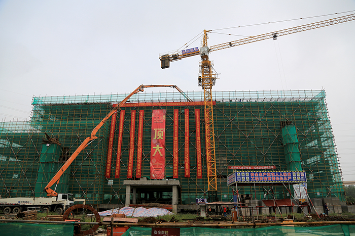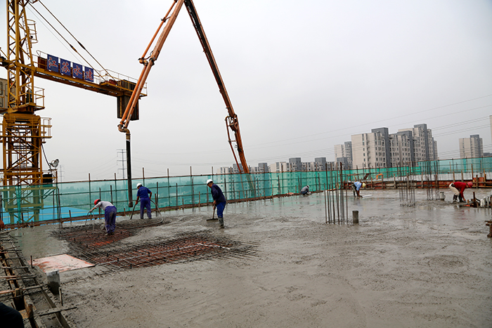 上午958分,随着最后一方混凝土从泵管流下,水建公司、水机公司在场的领导一起挥锹,为大楼封顶。这是继96日金加工车间、2#5#加工车间顺利通过钢结构主体验收,919日上午张爱军市长来新基地调研后新基地建设的又一大事。目前,新基地二期工程主体基本完成,进入设备安装、办公楼内外部装修装饰阶段。