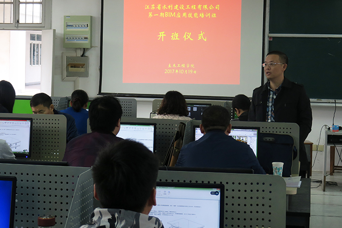 10月19日至24日,公司第一期BIM应用技能培训班在扬州江海学院成功开班。来自公司各重点水利工程一线的技术人员和相关业务部门技术骨干共35人参加了培训。