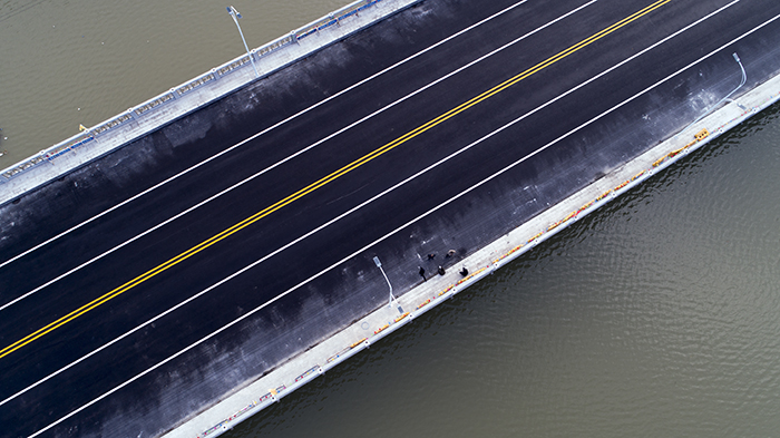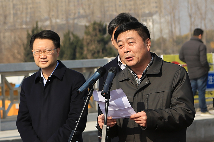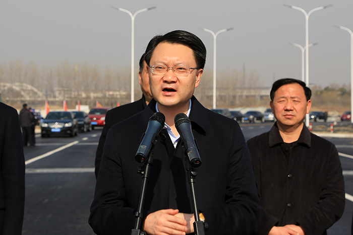 时爱祥董事长在发言中回顾了大桥建设过程,该工程作为我公司2017年的重要施工项目,于2017年3月13日开工建设,2018年1月22日完成全线沥青面层摊铺, 2月8日顺利通过验收,具备运行条件。施工过程中,得到了江都区政府、江都水利工程管理处、江都区城乡建设局以及建设、设计、监理等单位的大力支持。公司广大参建员工发扬铁军精神,克服高温酷暑,冒着严寒冰雪,夜以继日,攻坚克难,为大桥的顺利通车奉献了汗水和智慧。上世纪六、七十年代,公司的前辈们就在这里疏河开渠,建站筑闸,建起了举世瞩目的江都水利枢纽;今天,公司的青年儿女们又在此立柱强基,引路架桥,为江都人民奉上了一座畅通南北的民生之桥、发展之桥、友谊之桥。公司希望能够进一步发挥自身的技术优势、人才优势、资源优势,积极参加江都区的水利、交通、市政基础设施建设和生态环境治理,为江都人民建造mk体育国际官方网站,的精品工程、放心工程。