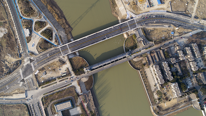 新西闸桥位于扬州市江都区老西闸桥上游,桥梁起点向北顺延与建都路顺接,桥梁终点通过环岛与长江路和滨湖路顺接,全长约580m,桥梁宽28米,全长221m。大桥建成通车为江都区老城区与新城区提供了更加快捷的通道,完善了区域路网畅通系统,推进了南水北调源头核心区的生态建设。