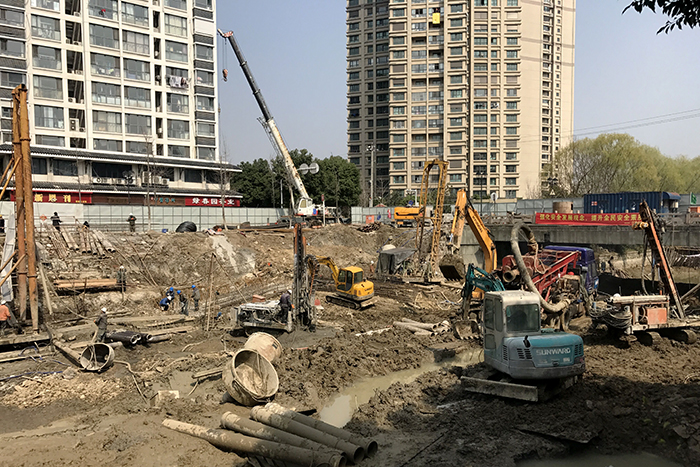 洋桥活动堰工程是常州市主城区“畅流活水”四座活动堰工程中的一座,建成以后能够营造城周水势、增加入城水量,实现城内科学配水,满足常州市东北部城区先期活水需求。本工程工期紧,2018年1月28日开工,5月25日需具备水下验收条件。由于工程位于市中心居民区旁,场地狭小,作业时间受限,施工难度大。目前正在进行灌注桩、高喷桩的施工,计划4月1日起开始主体工程的建设。