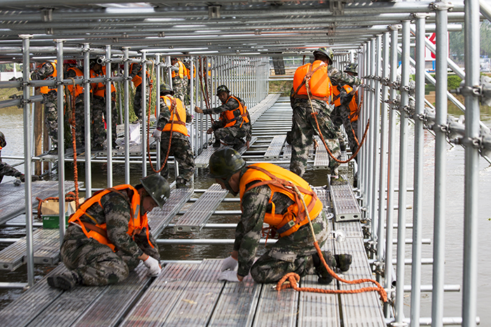 4月27日,来自江苏省军区、武警江苏省总队、省市20多支专业防汛抢险队伍以及社会化抢险队伍共400余名参训人员集结在江苏省防汛抢险训练场,开展了一场汛前军地联合防汛抢险实战演练。省防指指挥、副省长缪瑞林,省军区副司令员周志斌,省政府办公厅主任谢润盛,省防指副指挥、省水利厅厅长陈杰到现场观摩演练。省防指秘书长、省水利厅副厅长张劲松主持演练汇报会。