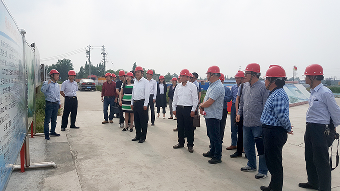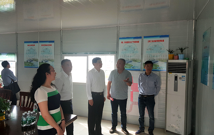 调研组参观了工程施工现场,听取了姜启生对“郭中文劳模创新工作室”的基本情况、工作目标介绍,以及在施工一线建立劳模创新工作点的作用和意义;听取了张东培对工程施工进展情况的讲解以及项目建成后对城区防洪排涝、清水活水的作用讲解。