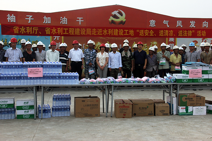 723日至24日,省水利厅副巡视员汤超率队赴我公司界牌枢纽和瓜洲泵站工地,开展夏季“送安全、送清凉、送法律”慰问活动,并对获得2017年度江苏省十大重点工程劳动竞赛荣誉称号的单位和个人进行了表彰。省水利厅机关党委、工会,省水利工程建设局及省太湖治理工程建管局、扬州市水利局有关负责同志参加慰问。我公司副总经理翟高明、总经理助理汤应来参加相关活动。
