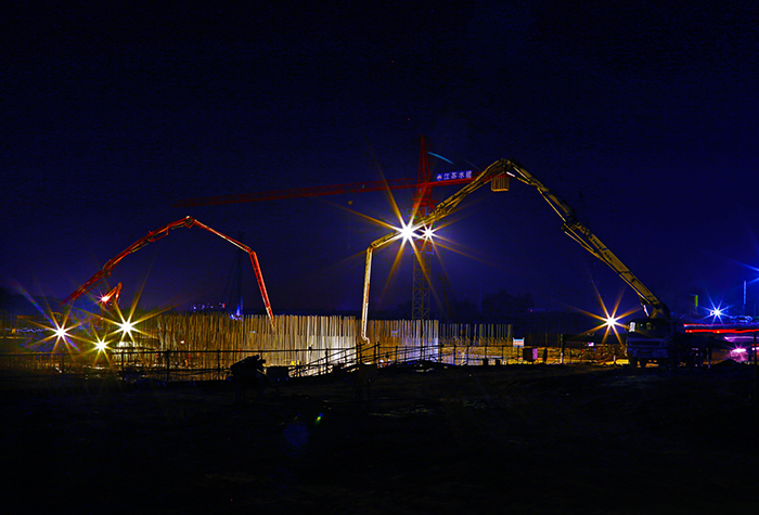 本次浇筑克服了气温高、方量大等难点,为接下来的底板浇筑和泵站施工积累了经验,打下了扎实的基础。