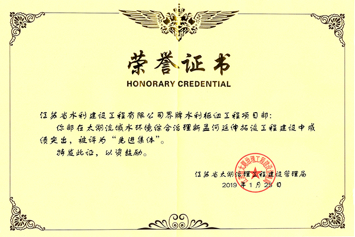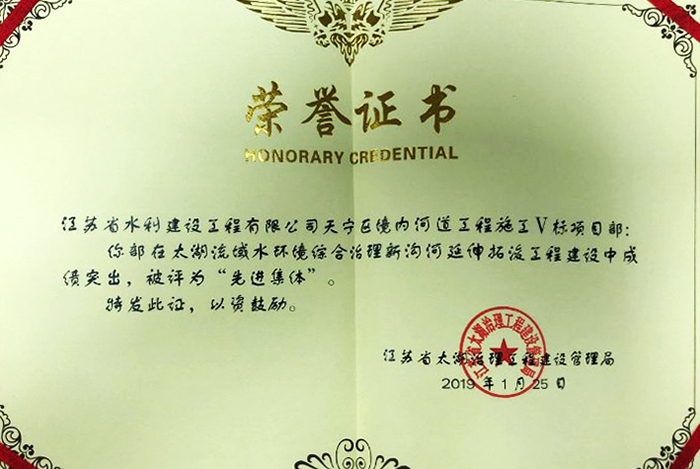 近日,我公司新孟河界牌枢纽项目部和新沟河常州河道V标项目部被江苏省太湖治理工程建设管理局评为太湖流域水环境综合治理先进集体。