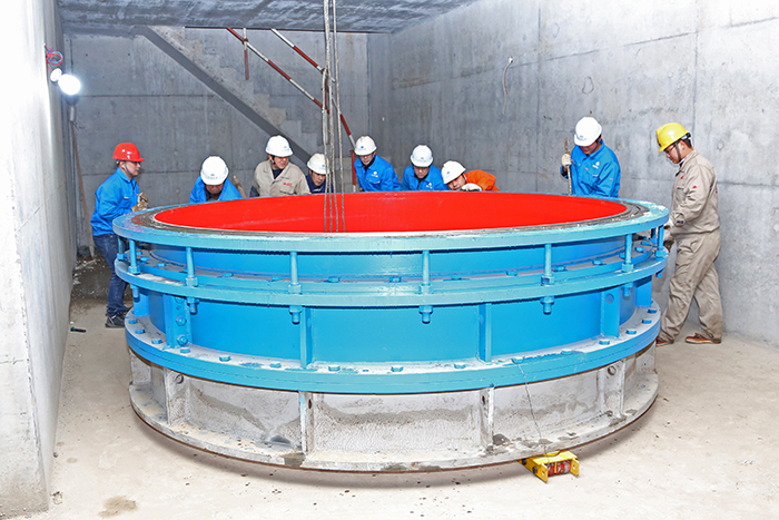 为确保工程能够在2019年汛期投入运行,及时发挥防洪排涝效益,在5月底扬州汛期来临之前必须完成设备安装调试,具备运行条件。机电安装分公司的安装技术团队围绕“如期实现开机排涝”这一重要节点目标,全力以赴组织工程施工。主要涉及6台总装机容量9600KW立式轴流泵、辅机系统、电气设备的安装,正常需要7个月的安装工期,经项目部优化,力争压缩到5个月内完成,以确保5月中下旬实现开机运行条件。