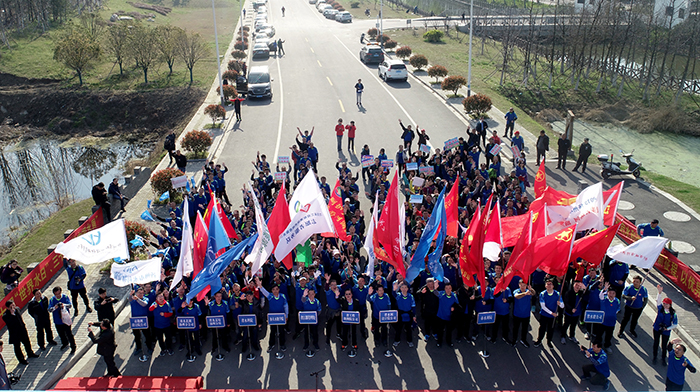 早春的阳光和煦明媚,瓜洲泵站工地上处处生机盎然。公司驾驶员带领、指引接送徒步人员的车辆统一、有序停放于项目部篮球场;公司志愿者们分工明确,有的早早到达中途补给站,精心准备了水、巧克力等物资,以供徒步人员能量补给;有的提前至终点准备好水、食品、纪念证书等迎接徒步大军;瓜洲项目医护人员提前准备了葡萄糖和急救用品,保障徒步活动顺利进行。