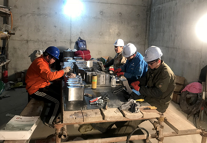 负责承担安装任务的机安分公司团队从春节前开始就进入到紧张、快节奏的安装进程中,大年初三就全员到岗,满负荷施工。施工现场悬挂着“鼓足干劲大干五十天,确保按时完成安装任务”的横幅,时刻激励大家以良好的工作状态投入抢工之中。目前,整个机电设备安装施工作业已全面展开,1-2号机组上机架、推力瓦架、推力瓦、推力轴承都已经安装到位,待调垂直度、盘摆度、调叶轮间隙等。3号机组完成叶轮外壳与导叶体的连接,主泵轴就位。4号机组电机定子同心初步调整好,水泵固定部分全部就位。5-6号机组水泵基础部分调整完成,准备安装主机泵。相应配套辅机设备水下部分安装基本完成,准备安装冷却油管、真空破坏阀等工序。现场还以“两人组”、“师带徒”等形式,结成小组,打配合战,节约时间,提高效率。