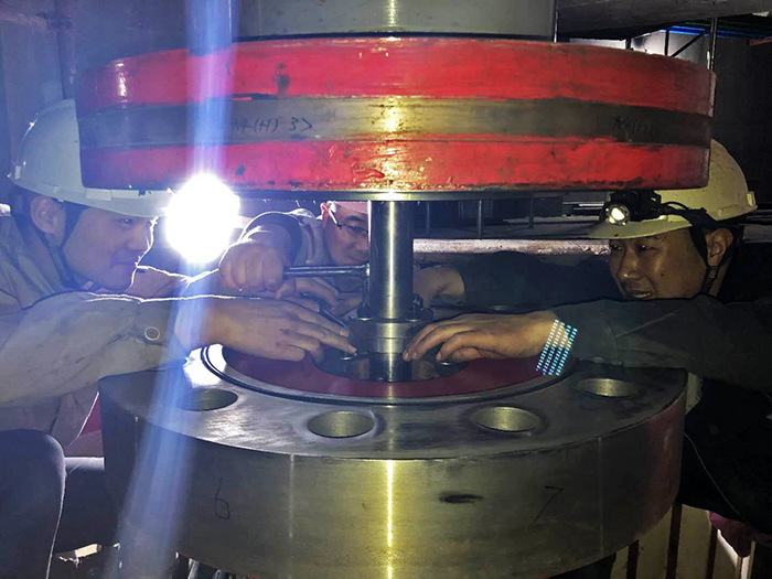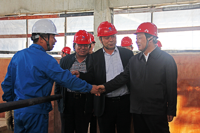 谢正义首先察看了泵站主厂房、机电安装作业现场,他说,我曾经在脑海中想象工程的规模,但没想到现场是如此壮观雄伟。在正在进行的3号机组盘车现场,谢书记与机安分公司党支部书记王建平等同志亲切握手,向现场加班的工人师傅们表示感谢和慰问。谢书记向安装负责人陆建江同志了解盘车工序的过程和目的,当时爱祥同志介绍机工老师傅陈庭霞同志,并介绍大师在安装时通过听、看、摸、测等手段发现问题解决问题时,谢书记夸赞:不得了,真厉害。