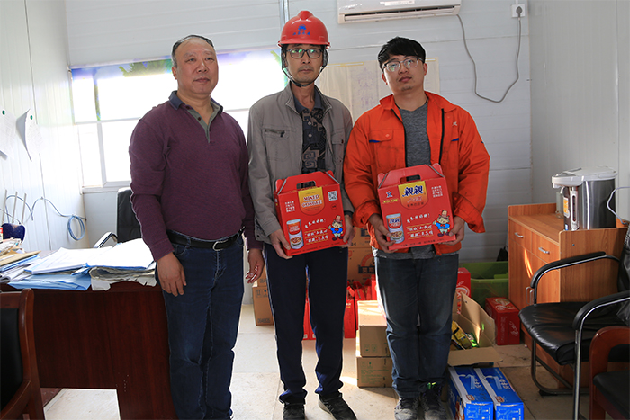 48号,小长假上班后的第一个工作日,公司工会主席姜启生、副总经理翟高明带队到工地慰问一线员工,在关心项目质量、进度、安全的同时,也提醒大家要注意饮食、睡眠等身心健康问题,更坚定了大家必须完成安装任务的决心。