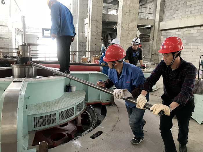 安装过程中,分公司领导多次到现场检查指导工作。“弟兄们辛苦了!”这是分公司经理何世明最常说的一句话。他几乎天天都到施工现场,协调解决技术难题及安装过程中出现的特殊情况,掌控工程进度,和工人们并肩作战。在进行“盘车调整电机主轴摆度”工序时,他看到人手不够,便上去“搭把手”。