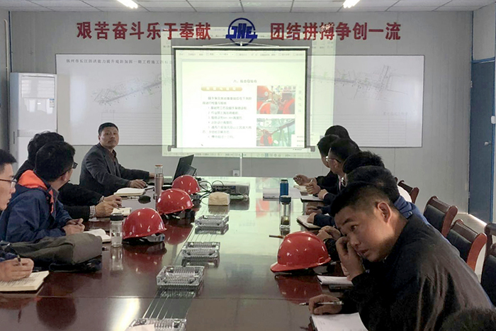 4月16日上午,基础工程分公司在扬州市长江防洪能力提升加固一期工程(江都区)施工Ⅳ~Ⅴ标项目部举办了安全生产现场教学培训。分公司各级管理人员、专(兼)职安全管理人员近二十人参加了培训。培训邀请了公司安全管理专家邓新杰分别进行了现场教学与理论培训。