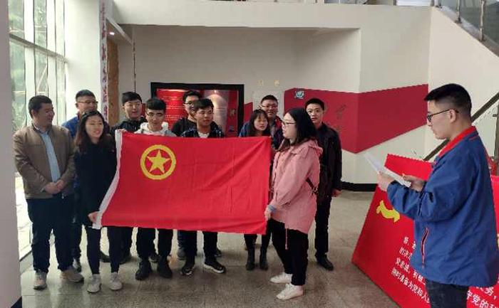下午,团员青年参观了江都郭村保卫战纪念馆,观看了郭村抗战时期的图片、展物,听取了英雄事迹介绍,并面对团旗,在庄严的团歌声中重温了入团誓词。通过看、听、悟的形式,团员青年们感受了抗战期间先烈们的民族精神,接受了“沉浸式”的精神洗礼。