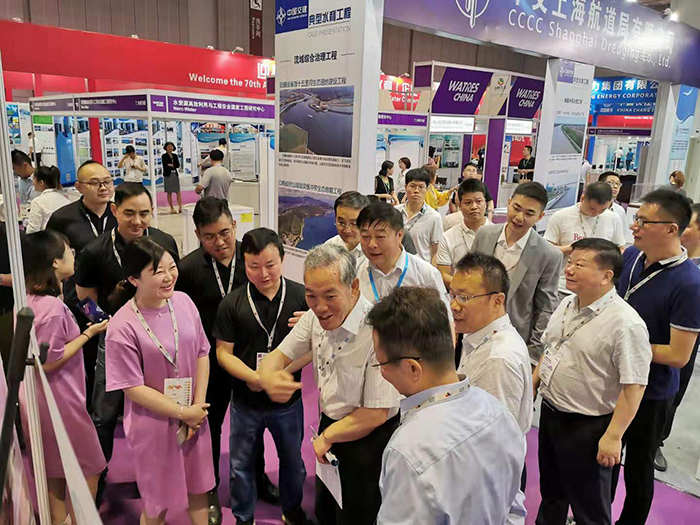 6月3日,时爱祥董事长、顾明如总经理率队参观了2019上海国际水利展暨水利企业发展成就展。在水机公司展位前,时爱祥向中国水利企业协会会长张志彤、副会长骆涛等介绍了公司发展情况和水机公司的环保清淤产品,多位专家、企业家对水机公司的产品表示了浓厚的兴趣,参展取得了良好的效果。