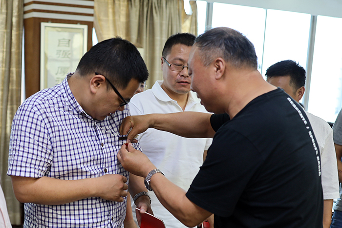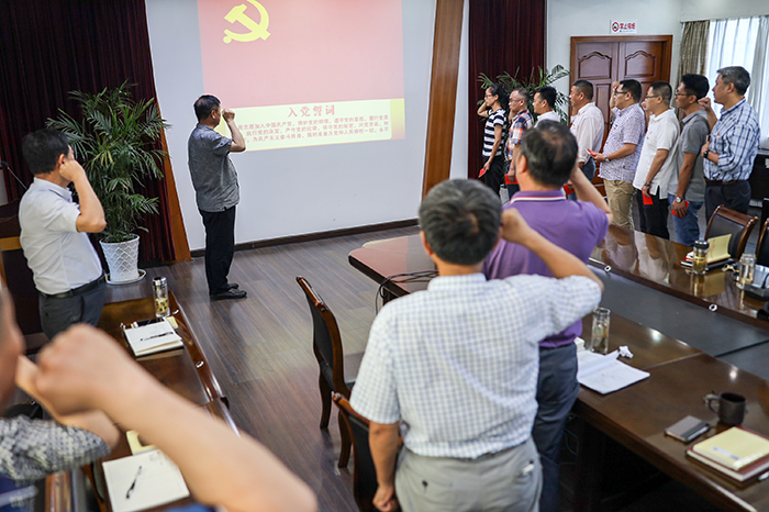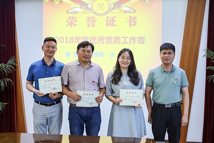 时爱祥带领8名新党员宣誓,并为其发放《党章》、佩戴党徽。同时,还表彰了一批先进党支部、优秀党员、优秀党务工作者。