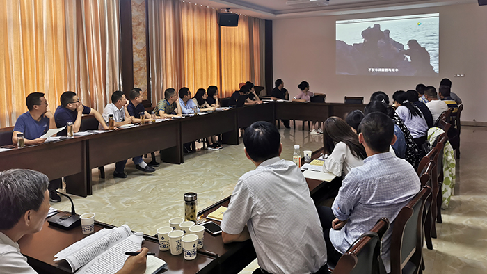 大家首先集中观看了电教片《孤岛32年》。王继才和妻子王仕花二人克服常人难以想象的困难,守卫孤岛整整32个年头的事迹深刻感人,从他们身上表现出的强烈的爱国奉献精神,成为在场的每一个党员的价值追求。