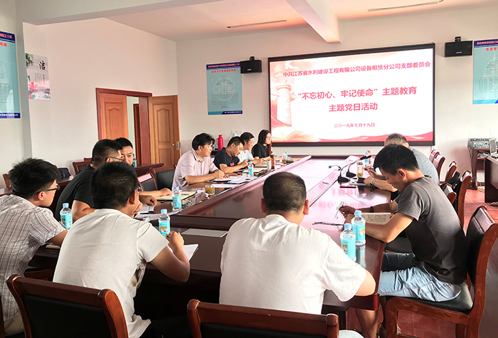 姜启生给全体党员同志讲了“不忘初心、牢记使命”专题党课。他强调了“不忘初心、牢记使命”主题教育的重要意义,解读了本次主题教育的总要求,针对目前设备租赁分公司在手项目及经营重点提出了相关要求,他强调,党员同志要把开展主题教育与自己的工作结合起来,对标找差,立查立改,不忘水利初心,牢记担当使命。