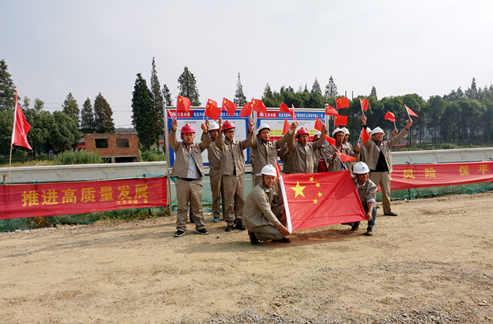 太滆运河施工I标挡墙施工队庆祝建国70周年