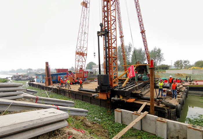 太滆运河施工I标插板桩施工队以实际行动向祖国送祝福