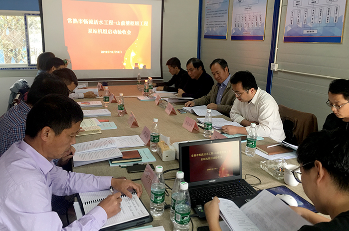 20191018日,由公司三分公司承建的常熟市畅流活水工程-山前塘枢纽工程顺利通过泵站机组启动验收。常熟市发改委、财政局、水务局等有关部门及各参建单位参加了启动验收会。公司副总经理、总工程师夏国春参加了验收活动。
