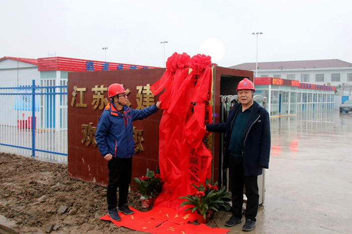 升旗仪式后,时爱祥和基础工程分公司经理李存笔为项目部及党支部揭牌,时爱祥鼓励全体人员再接再厉,严把工程质量关,严抓安全管理,推进党建与工程建设双成效、双丰收。