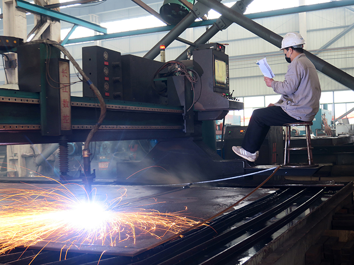 钟卫华介绍,目前每天上班的员工有200多人,跟高峰期相比,产能大约在八成左右。当前最大的问题是上下游链条不畅,采购的材料、零配件进不来,制作好的钢结构出不去,只好堆积在厂区内。不过他表示,有信心做到疫情防控和生产制造两不误,克服困难开足马力稳产,确保完成汛前任务,待到春暖花开时,正是为水利工程安全度汛立功日。