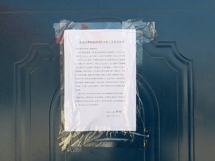 南京九乡河施工4标项目部克服困难,创造条件落实防控措施。图为项目部在接受属地管理部门进行现场复工条件验收。
