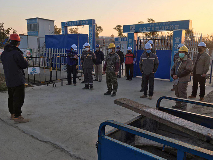 清晨7时,机电安装团队就已经开始班前安全教育。他们从早7时到晚7时,一天至少工作10个小时。