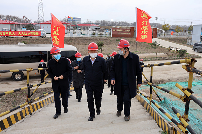 26日,赵世勇副省长赴太湖治理新孟河界牌水利枢纽工程调研疫情防控和复工工作。省水利厅厅长陈杰、副厅长朱海生、镇江市、丹阳市有关负责同志陪同调研。我公司董事长时爱祥、总经理助理汤应来等参加活动