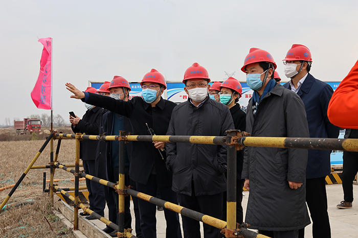 赵世勇一行实地查看了新孟河界牌枢纽工程建设现场,听取了太湖流域水环境综合治理总体规划、实施方案、工程进展、工程效益的情况汇报;详细询问了重点水利工程疫情防控、复工情况及下一步的工作安排。