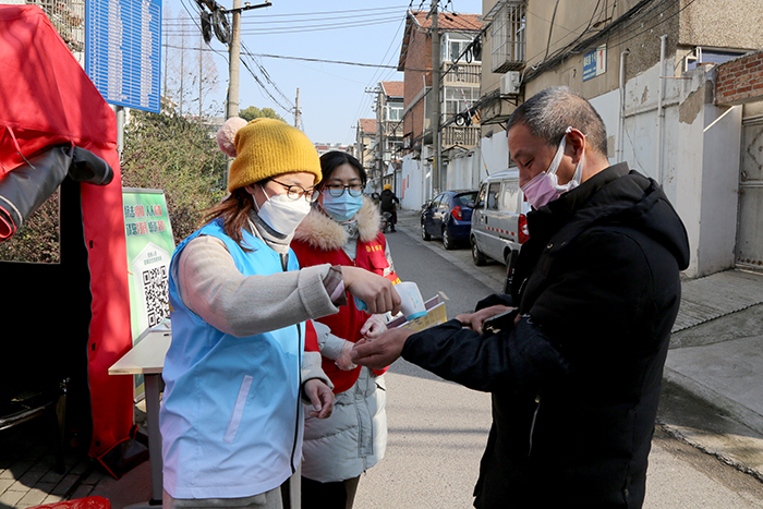 签约仪式结束后,来自各分(子)公司、各部门的近30名巾帼志愿者、青年志愿者戴起了红袖章,穿上了红马甲,立刻投入到社区防控卡口的值守工作中。春寒料峭,一天的值守工作虽不难却也不易。在社区工作人员的帮助和指导下,志愿者们为小区出入居民测量体温,引导其用微信扫描出行码、填写健康动态二维码、登记外来人员信息,用实际行动投入到抗疫一线。