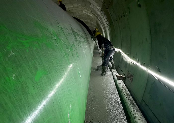 经过7个月的努力,工程累计完成2672米DN3496供水钢管的制作安装,浇筑填充混凝土约1.4万方。