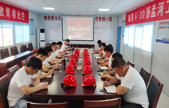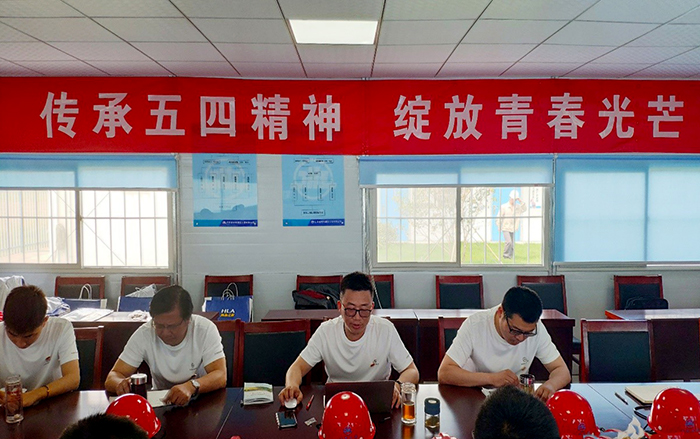 火红的五月,百花盛开;奋斗的青春,光彩绽放。在伟大的爱国“五四”运动101周年之际,为传承五四精神,点燃青春梦想,基础工程分公司团支部于5月4日上午在常州新孟河延伸拓浚工程施工Ⅲ标项目部开展了以“无奋斗,不青春”为主题的五四系列活动。分公司全体团员青年参加了主题活动,分公司经理李存笔、党支部书记王志元到会指导。