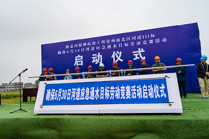 5月5日,基础分公司新孟河延伸拓浚常州市河道III标项目部举行了“确保河道应急通水目标劳动竞赛活动”启动仪式。省治太局、新孟河延伸拓浚工程建设、设计、监理单位负责人和我公司总经理杨斌、副总经理、党委副书记、工会主席姜启生参加活动。