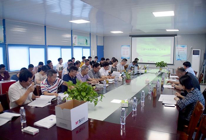 6月10日, 第三工程分公司在苏州园区陆泾河项目部召开了第三届职工代表大会暨会员代表大会第一次会议。公司领导杨斌、姜启生和31名职工代表参加会议。