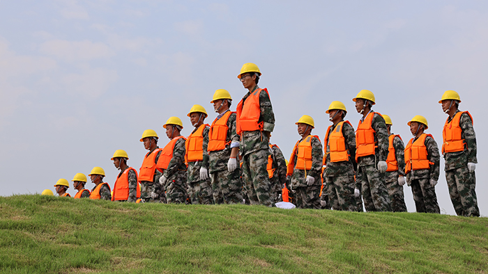 我公司参演科目为搭建钢木土石组合坝封堵决口。一分公司抽调了30名精干熟练的技术工人组成演练队伍,由瓜洲泵站项目部工程技术科单国威任领队。顾明如董事长要求参演队员充分发挥专业特长,全力以赴,认真参演,展现过硬的素质和良好的精神风貌。