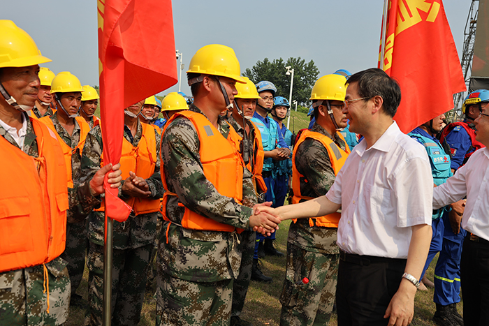 627日至30日,江苏省防汛抗旱指挥部在南京六合举行2020年防汛应急抢险救援实战演练。30日下午,副省长惠建林现场观摩演练并讲话;演练结束后,惠建林副省长等领导看望慰问了参演队员。我公司董事长顾明如应邀现场观摩演练,公司防汛应急抢险队参加实战演练。