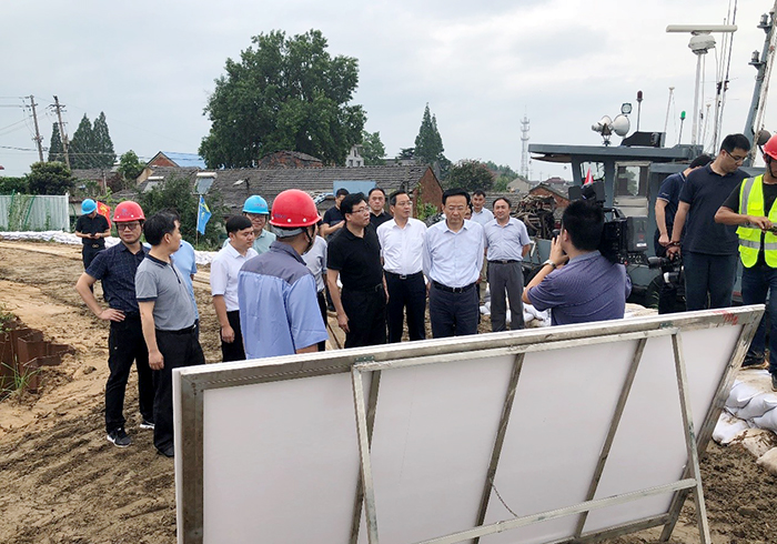 扬州市委书记夏心旻到公司邗江河闸站拆建工程检查防汛抗灾工作