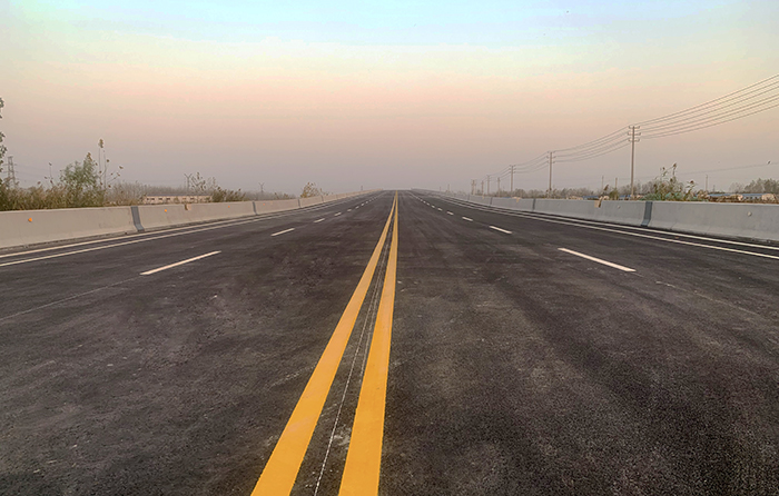 翔盛路大桥位于船闸上游U型槽上,桥梁全长598.48米,主桥采用截面预应力砼连续梁,引桥采用20米装配式预应力砼空心板,桥梁全宽为21米,下部结构采用矩形盖梁式墩和桩柱式桥台,钻孔灌注桩基础。工程于2018年4月28日开工,2020年10月7日完成桥面沥青混凝土铺装。