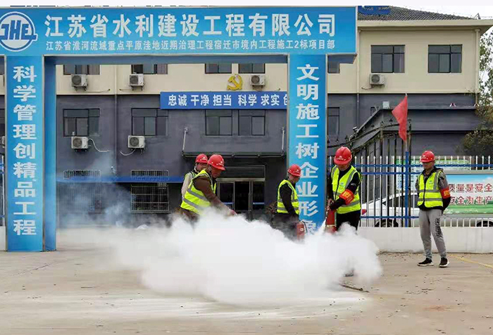 4月13日,第四工程分公司淮河流域平原洼地宿迁市2标项目部组织开展了消防应急演练活动,项目部管理人员、施工队长共同参加了演练。