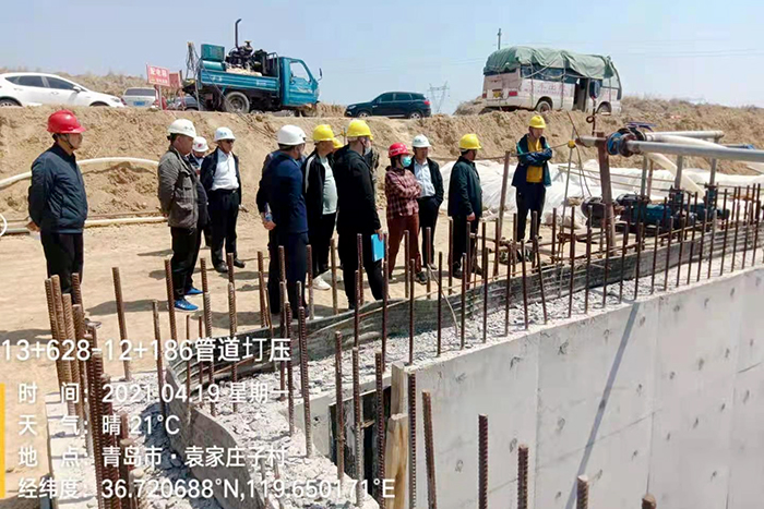 419日,青岛市黄水东调承接工程平度二标段输水管线顺利通过管道试压验收。青岛市水利质监站、项目法人、代建单位、监理单位,共同对本段管道试压工作进行联合验收。