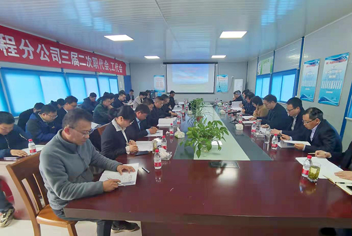 4月10日下午,第二工程分公司在公司五楼会议室召开三届二次“职代会、工代会”,公司领导汤应来、李娟和分公司26名职工代表参加会议。