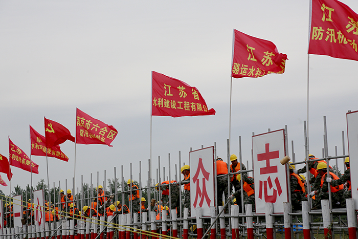 我公司参演科目为“钢木土石组合坝”,由综合管理部组织带队,分别从一分公司、基础分公司、材料设备管理中心抽调了20名精干熟练技术工人组成演练队伍,从61日起,连续三天接受防汛知识培训和实战操练。在63日的演练现场,抢险命令发布后,公司抢险队员立即奔赴现场展开作业,紧张有序地搬运钢管,搭建脚手架,打设木桩,紧固扣件……迅速竖起了一道钢木土石坝,成功封堵了溃坝决口。公司参演队伍在整个演练过程中充分发挥了专业特长,展现了过硬的素质和良好的精神风貌。