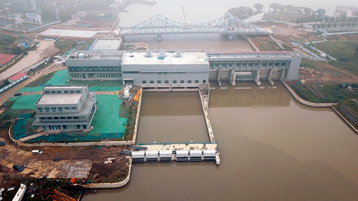 定波水利枢纽工程包括节制闸和双向泵站各一座,节制闸总净宽48米,泵站设计排涝流量120立方米/秒,装机4台套,单机设计排涝流量30立方米/秒。工程于2019年8月开工建设,2020年6月通过水下验收,2020年12月底完成泵机组安装,到2021年6月主汛前迎来了机组试运行。该工程是公司在无锡地区组织实施的关键工程、形象工程,工程建成后将进一步扩大区域洪水北排长江的能力,提高武区域防洪除涝能力,兼顾区域供水和改善水环境。项目部将继续发扬水建铁军精神,尽快完成施工任务,早日发挥工程效益。