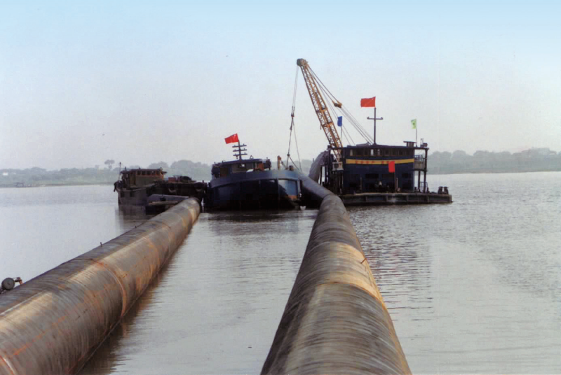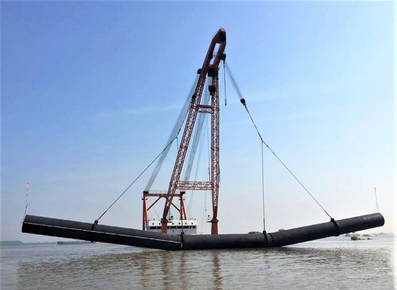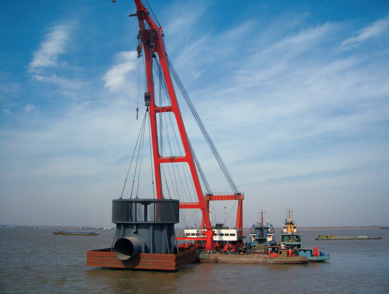华能金陵电厂排水口移位工程大型三维钢沉管施工现场
